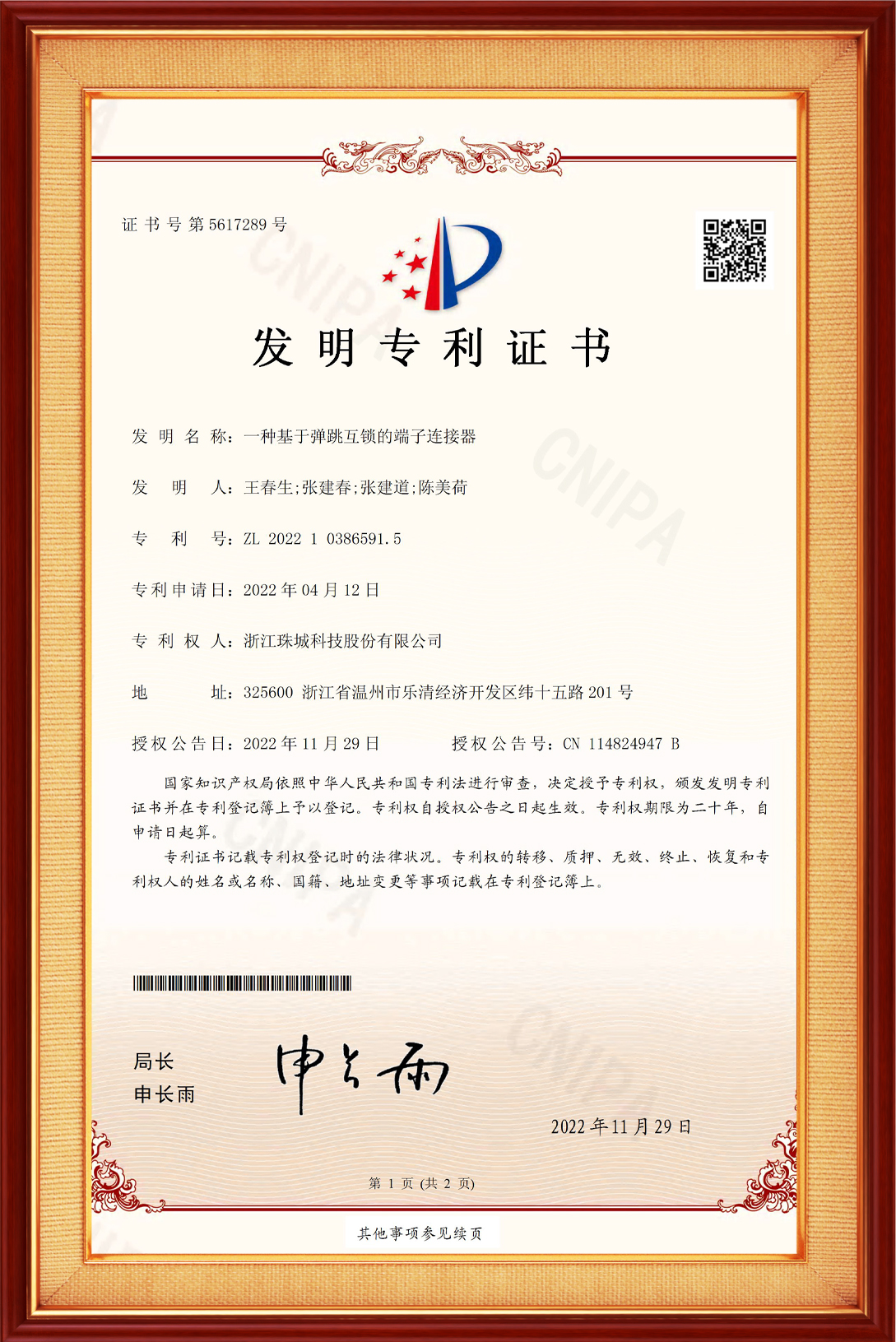 截至目前,珠城共計有效專利